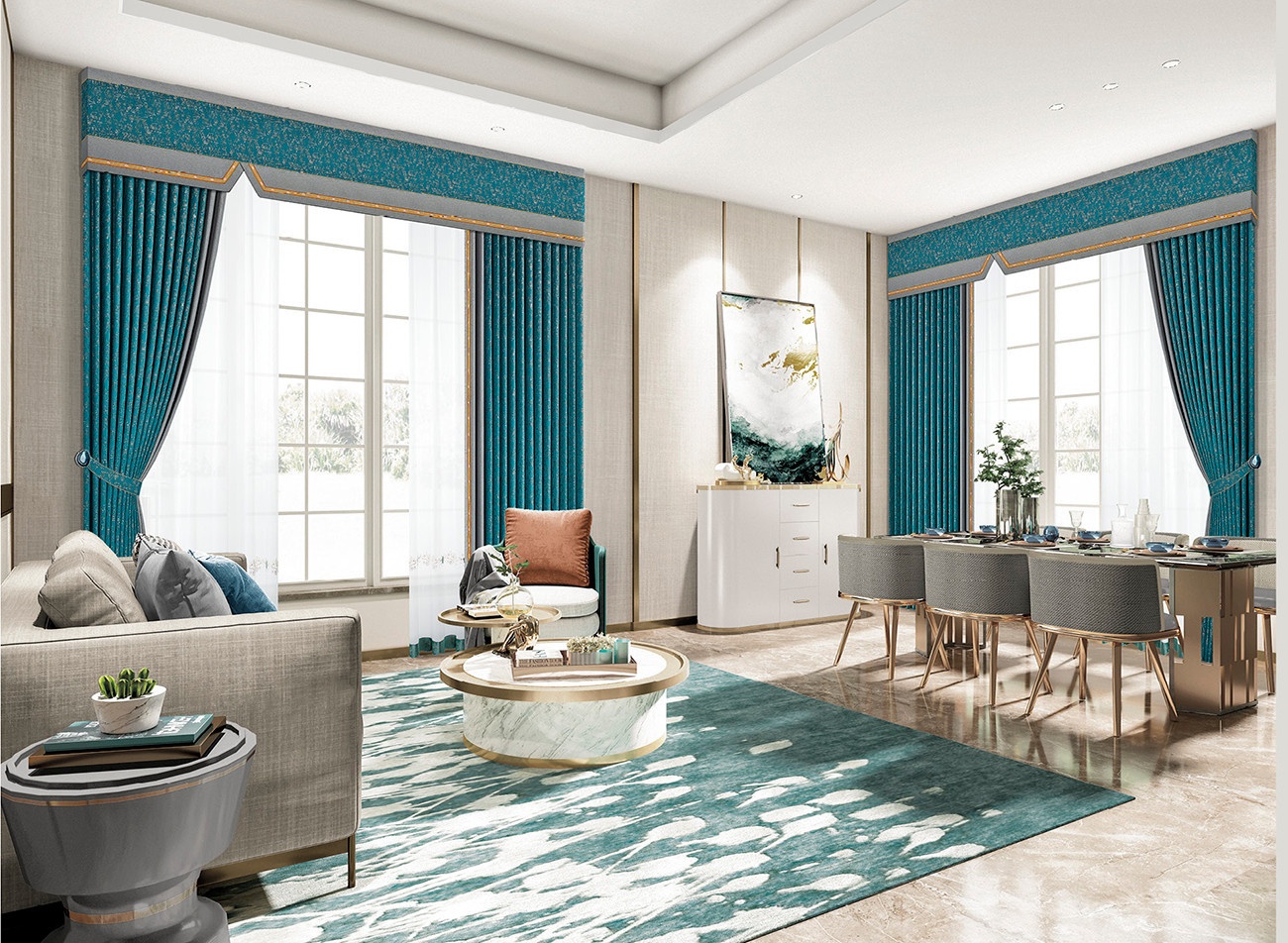 孔雀藍,清涼如夏,就像涼涼的微風(fēng),應(yīng)用于窗簾,演繹一派優(yōu)雅從容