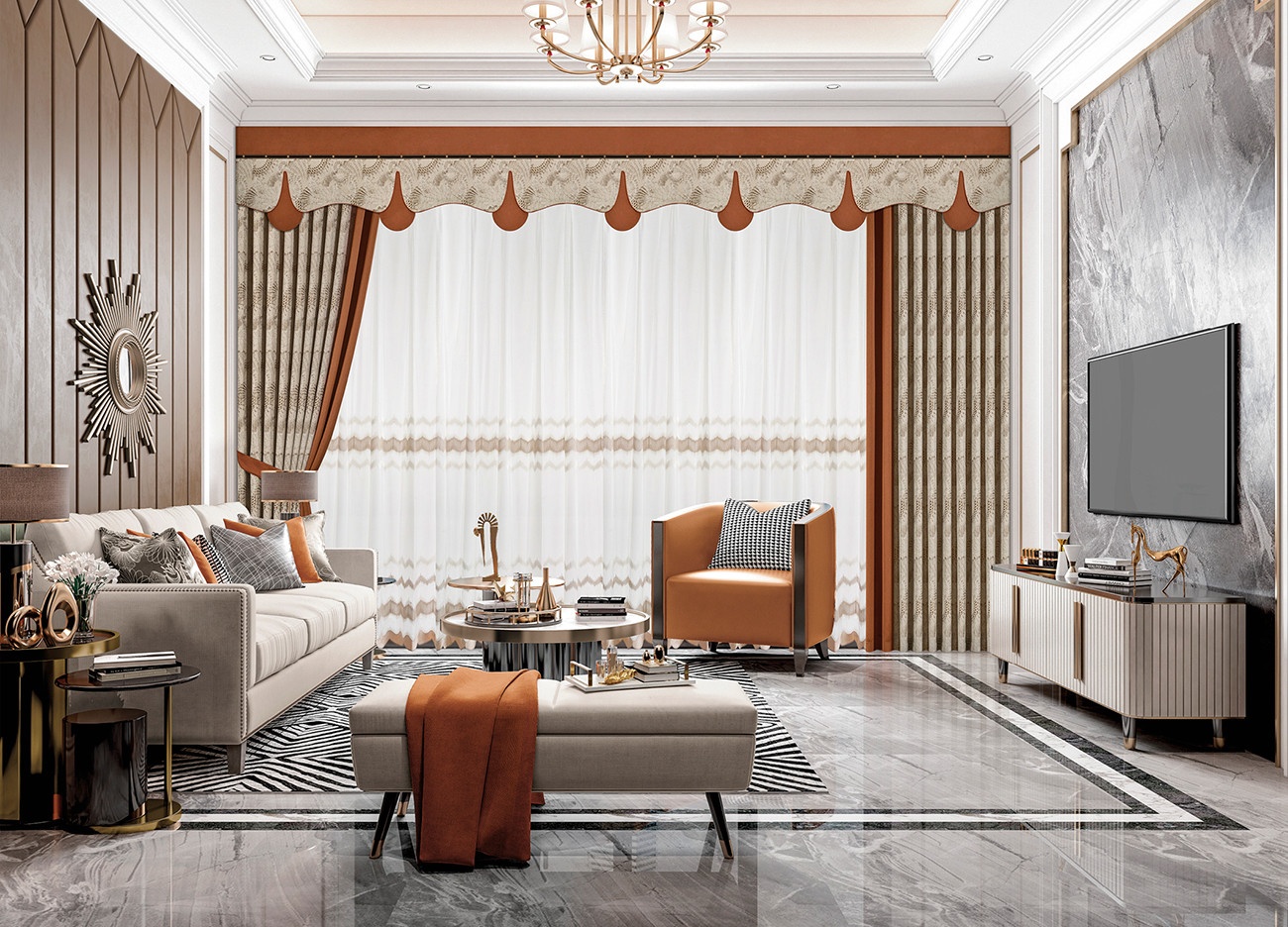 探戈橘紅,展現熱情四射的誘惑,配合雅致溫柔的米褐色,使空間充滿現代流行藝術氣息,輕而易舉表現一種愉悅的態度,浪漫滿點。