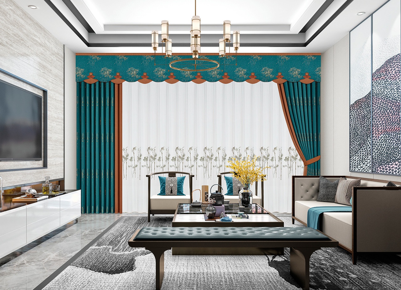 孔雀藍與橘色互補,—冷—暖碰撞出激情的火花,充滿生命力的美感,彰顯閑情雅致與舒適真實之感,上演時尚藝術與生活藝術的生動交匯。