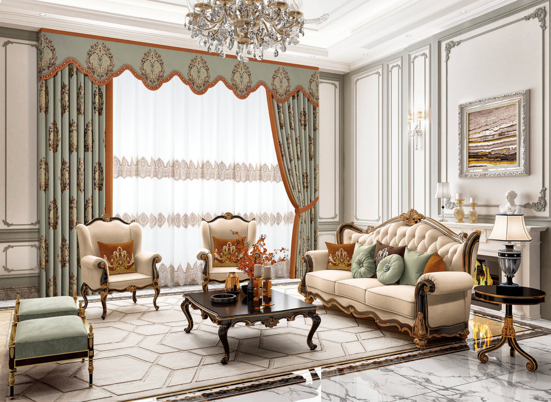 田園牧歌式的色調,兼具田園的隨性與都市的精致,讓空間變得活躍。古典的水波簾造型美觀,更添幾分簡約典雅氣息。